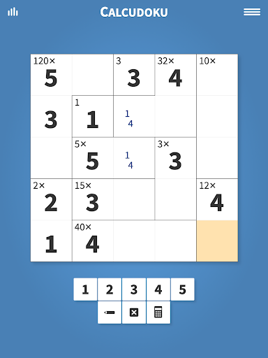 Calcudoku offers thousands of fun math puzzles with features to help you solve each puzzle. Enjoy an unlimited number of hints and checks in case you get stuck. Use the calculator tool to help with multiplication and division against large numbers. And rest assured that all puzzle games are automatically saved and restored letting you stop and restart games with ease.