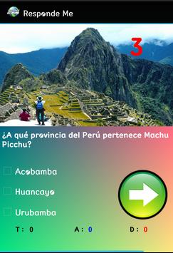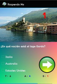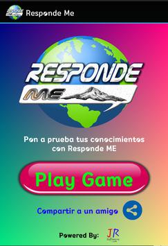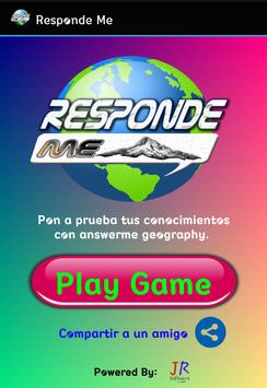 Responde Me, Desarrollado por JRSoftware, te reta a responder a cada una de las preguntas geográficas, las cuales incluyen: Ríos, Lagos, Océanos, Monumentos, Idiomas, Historias, Banderas, mapas, etc; cada pregunta tiene un tiempo limite de 12 segundos para responder, si en ese tiempo no respondes se calificara tal pregunta como (Fallida), a parte de el tiempo limite dispone también de una barra la cual ira disminuyendo a medida que pase el tiempo sin responder, una vez que la barra de vida se haya agotado habrás perdido la partida.
