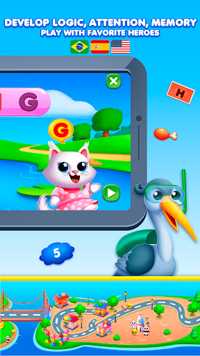 The game consists of three famous places on Earth. Each zone is themed and stylized based on different cities on the planet, easily recognizable through their famous features and landmarks: San Francisco, Paris, and Moscow. In every game, your children encounter a variety of fun characters: Fluffy Chick, Glamorous Kitty, Cool Panda, Clever Heron, Funny Pig, Friendly Dog, Cute Rabbit.