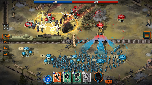 To win in RTS Bunker Wars: WW1 Strategy, you must try acting like a real general, fortifying your bases with towers, and tactically directing troops to enemy buildings. Enlarge your army, break through the opponent's defenses, expand your territory, and strengthen the defense of your towers. In this military strategy game, you need to react quickly and make decisions in real-time.