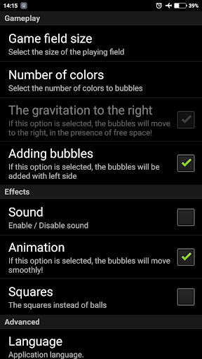 Simple classic game by breaking bubbles! Features: - Select the size of the playing field; - Select the number of colors to bubbles; - Scores for each combination of Field Color; - Auto-save game. Strive for new records!