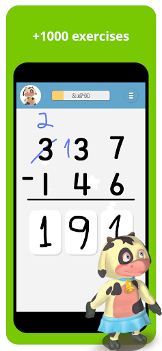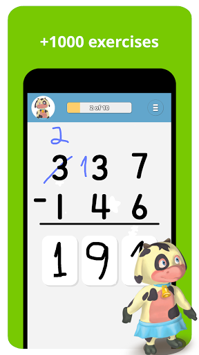 Have fun while learning how to add, subtract, multiply and divide. Pick a cute Toon Math character to guide you through more than a thousand math exercises. Learn at your own pace, without too much stress or difficulty.