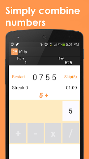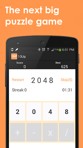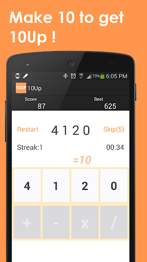 10Up is based on a popular (informal) game in Australia where you combine 4 numbers on the train to make 10. 10Up's concept tests your math skills and puts it in a fun puzzle game with a short game session to fit in between tasks or kill time.