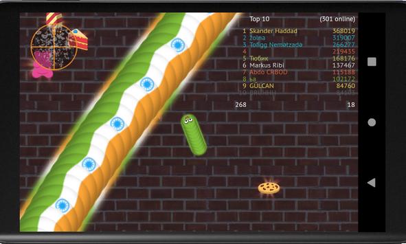 Drive your worm in massively multiplayer online game! Eat sweets, donuts and cakes to grow faster. Cut off other players by letting them crash heads into your worm's body. Play with others all over the world.