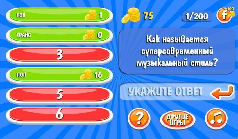 очень просты. На каждом уровне будет задаваться вопрос, а Вашей задачей будет угадать 6 самых популярных среди опрошенных людей ответов на этот опрос. В начале каждого уровня вам будет показан вопрос и шесть закрытых полей. На первый взгляд задача отгадать все слова кажется очень простой, но на самом деле Вы очень удивитесь, когда поймете, что Ваше мнение не всегда будет совпадать с мнением опрошенных людей, а ответы на вопросы не так легко найти. Чтобы перейти к новому вопросу, нужно угадать все 6 вариантов ответа на предыдущий вопрос.