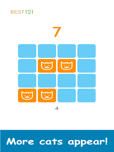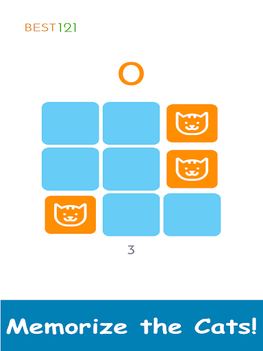 Tap Cats is a simple, free game that puts your memory to the ultimate test. This memory game involves memorizing tiles of cute cats and tapping on them. As you advance through the game, the board size increases from 3x3 to 4x4, 5x5, 6x6 and so on. Will you be able to memorize all the tiles with the cute cat on the board? Well, it may not be as easy as it looks. Don't believe it? Download this memory game and try it yourself!