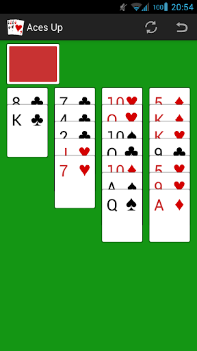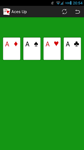 Aces Up, also called The Idiot, is a simple but addictive solitaire whose name refers to the state of mind you reach, as it's not solved very often.