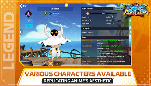 One of the most notable additions in OPG: Pirates Legend is that, in addition to each character's unique skill set, you now have access to the pirate's ultimate power talent. Increase your fighting power and combat ability.