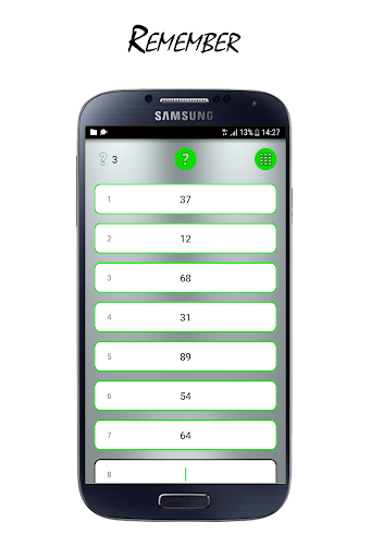 2) Remembering all numbers at once - memory training in this mode imitates situations when access to a unit of information is not limited.