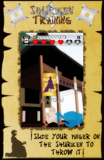 Move the mobile or tablet to find the ninjas hidden behind the training scrolls and throw them shurikens by sliding your finger across the screen before you get a hit of damage.