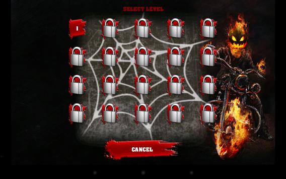 We have made 20 different levels that will extend this fun bike rider game. Levels have amazing halloween scenery and get harder and harder to beat..