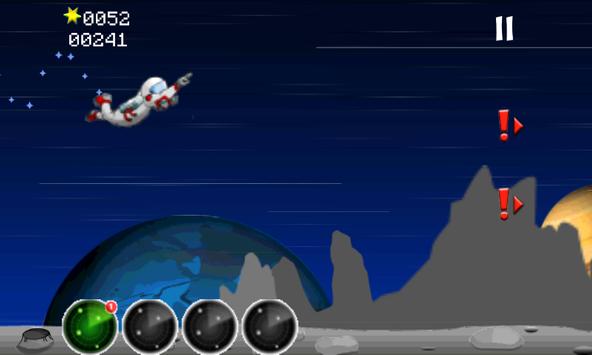 This adventure game takes place in space. You play game as robot who needs to get as far as possible with his super powers. Robot can fly, but be careful angry enemy is sending rockets that end you space jurney. And thats not all! Because enemy