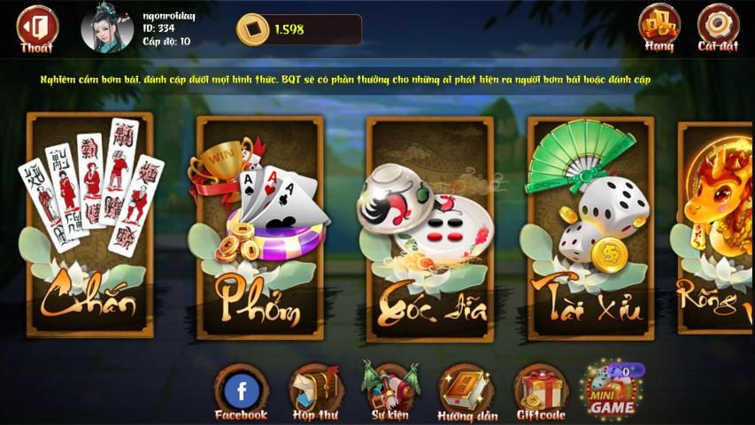 - Đa dạng thể thoại game: Chắn Dân Gian, Phỏm, Xóc đĩa...