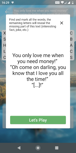Open puzzle, find and mark all the words from list and the remaining letters will reveal the missing part from task (jokes, interesting facts, celeb rumors, tips for life, famous statements...).