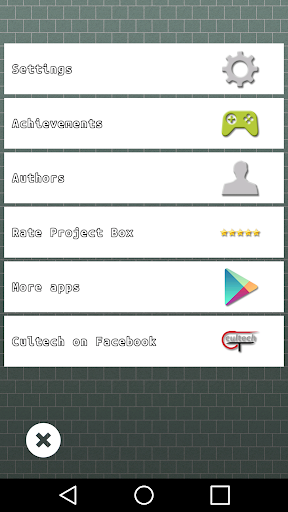 Project Box is brought to you from a Czechoslovak company Cultech. This game is addressed for players in any age with any taste for gaming style. If you like simple and logic games with a little Tetris feeling, don’t hesitate and download it! Project Box will help you shorten boring moments in school, work, before sleep, at a bus stop, or in the restroom. Thorough work and time invested in the design of game levels has resulted into quick fun which thanks to its many variations of levels lasts throughout the entire game. After many tests we decided for a maximum of 2 minutes of gaming time per level. This prevents you from being bored.