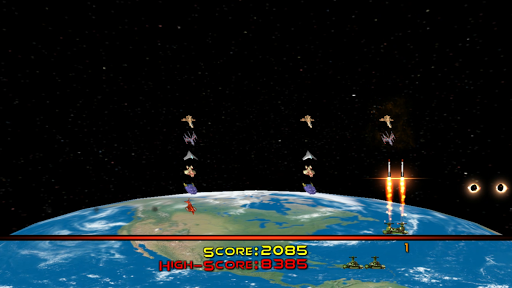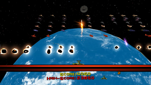 - Occasionally, a flying saucer will appear at the top of the screen.