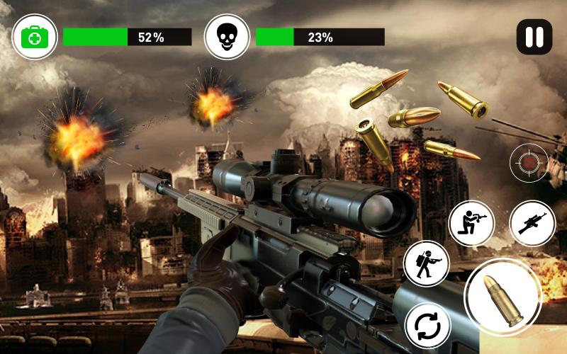 Sniper shooting games offline a new fun shooting games 3d Shooter experience. Join the resistance and command like a professional sniper. Take action and survive on the frontline. Shoot to kill in special ops and survive in shooting game offline 2018! Modern control that bring you a fun and addictive combat. Play free shooting games shoot to Kill and release the fury of this war! You received the call for duty of saving the people.