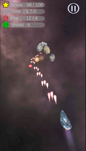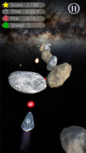 A shooter game with 3D asteroids, fireballs/meteors and special power diamonds.