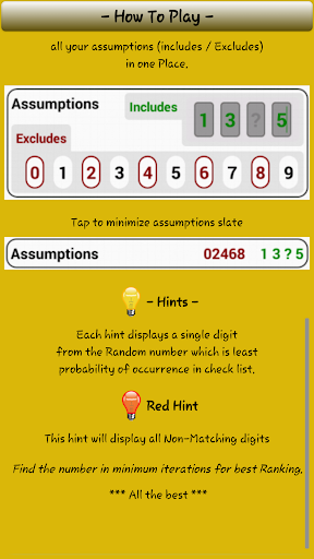 Game randomly generates 4-unique digits between 0 - 9. Now gamer needs to find the random number by checking the probability of their assumptions.