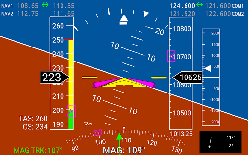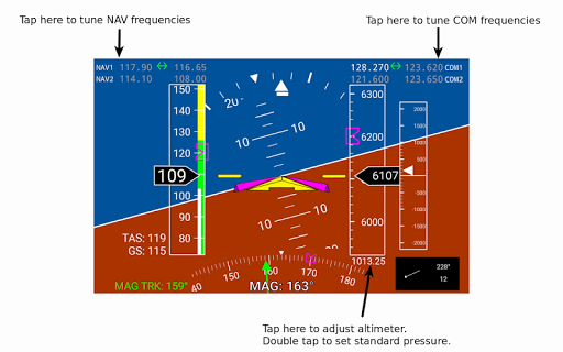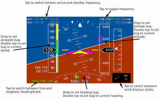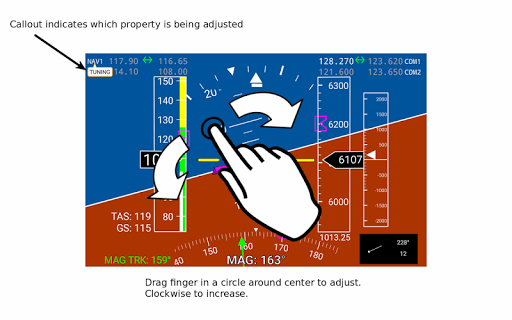 - Set the heading, speed, and altitude bugs by tapping or dragging.