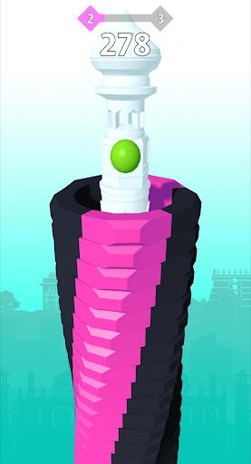 Stack bounce don't let the ball hit the black stack because it will crash ,after reaching the end of the stack with rock music achieve victory