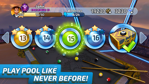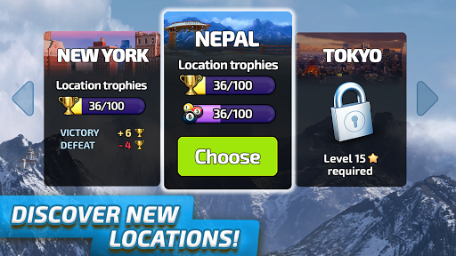 Practice your billiard skills and unlock higher levels: London, Tokyo, Nepal and many more awaits you in Pool City.