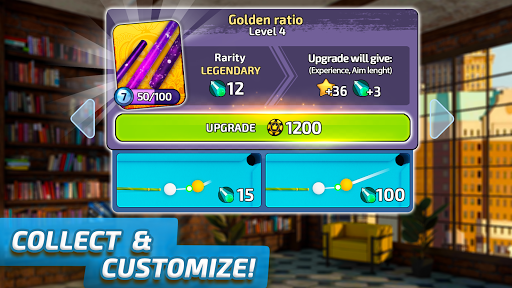 Play matches, win special cards and upgrade your equipment to the maximum. Perform more advanced shots with total pool table customization, precise cue stick parameters, accuracy control over the cue ball and and ability to adjust your spin. Complete daily tasks and unique achievements to advance faster.
