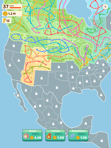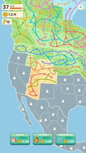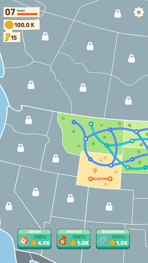 Tap to connect dots by lines, build city, stack the states. With each new territory you open a new station, collect em all! Upgrade states railway stations and connect them all.