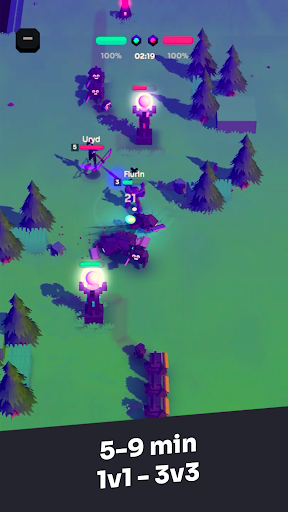 Strategic, intense, quick 5-9 min battles, 1v1, 2v2 and 3v3 skill-based online multiplayer.