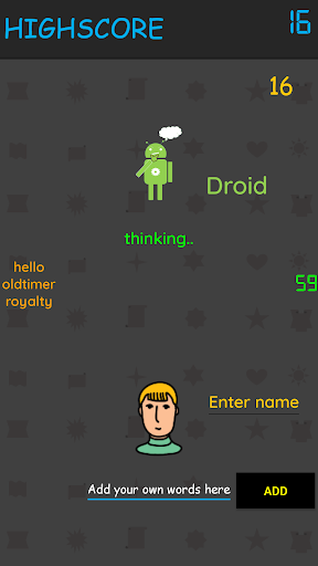 If you type 'Good', the opponent types, say, 'Day'and you type, 'yellow', and so on.