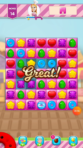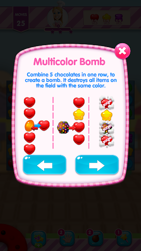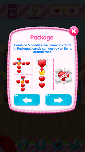 Swipe to match same colored candies to experience the most satisfying candy blast action. Collect coins and spend them to unlock a range of power boosters like candy bombs, candy destroyer and color neutralizer etc. You can also get hint to solve candy puzzle.