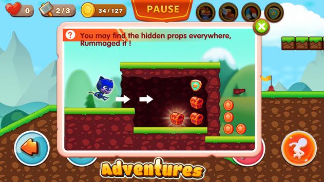 Super piji World is the best classicmasks adventure platform game. In this super world game you will have great adventure through wonderful old jungle. Beautiful Graphics will make you love this pj-maske game. It's not fearful, it's friendly, cute and suitable for everyone evens.