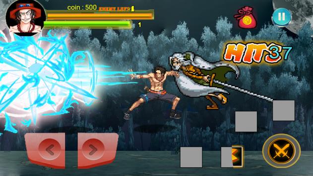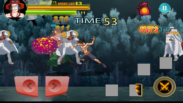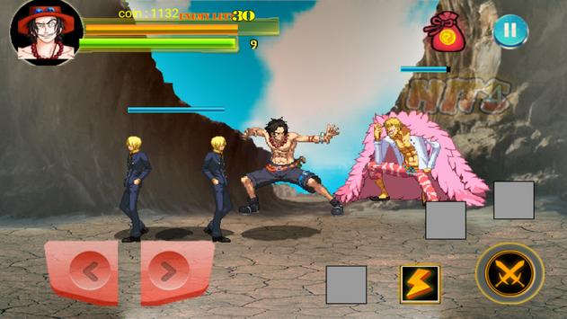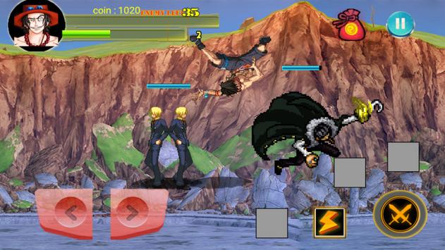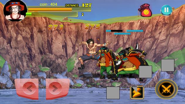 In the game you will play the protagonist D Luffy, Roronoa Zoro, Namim, Usopp, Vinsmoke Sanji, Tony Chopper, Nico Robin, Furankī, Gold D. Roger, Shankusu, D. Ace and other pirate fighter to participate in adventure adventure adventurous.