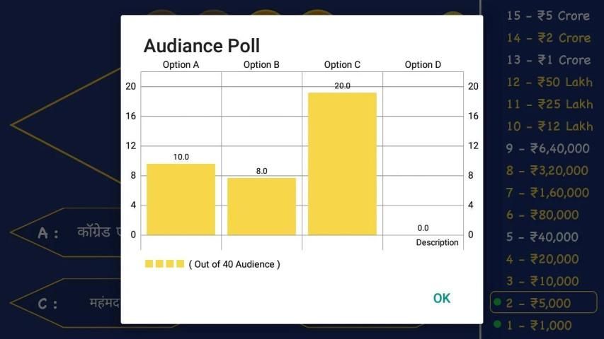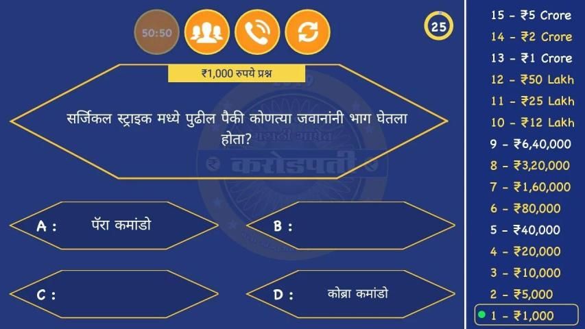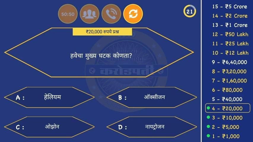 चला, आपल्या मराठी भाषेत मराठी करोडपती खेळ (KBC) खेळू आणि नवीन सामान्य ज्ञान आणि सध्याच्या विषयाशी संबंधित प्रश्न असलेली गेम खेळून आपले सामान्य ज्ञान सुधारू. आम्ही घेऊन आलोय मराठी करोडपती २०१९ खेळ खास तुमच्यासाठी. हा खेळ सर्वांसाठी खेळण्यास योग्य आहे. या खेळामध्ये सर्व काही मराठी भाषेतून आहे, जेणेकरून लहान मुलांपासून मोठ्यापर्यंत या खेळाचा आनंद लुटू शकता. मराठी करोडपती २०१९ मध्ये भारतातील बँक, एसएससी, रेल्वे, सिव्हिल सर्व्हिसेस, एमबीएच्या परीक्षांसाठी मराठी मधील सामान्यज्ञान जाणून घेण्यासाठी भारतातील चांगले अॅप आहे.