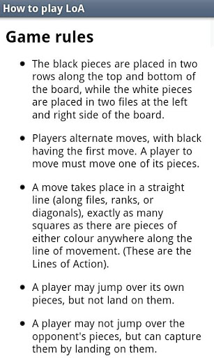 Is a connection game like Hex or Twixt, but in contrast to the typical connection games, LoA is more chess-like because pieces are moved over the board instead of put on the board, and pieces can be captured.