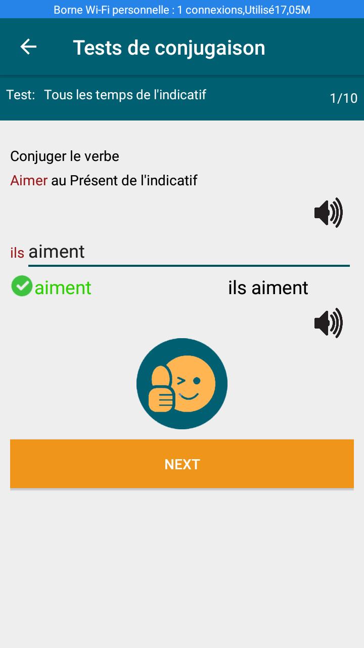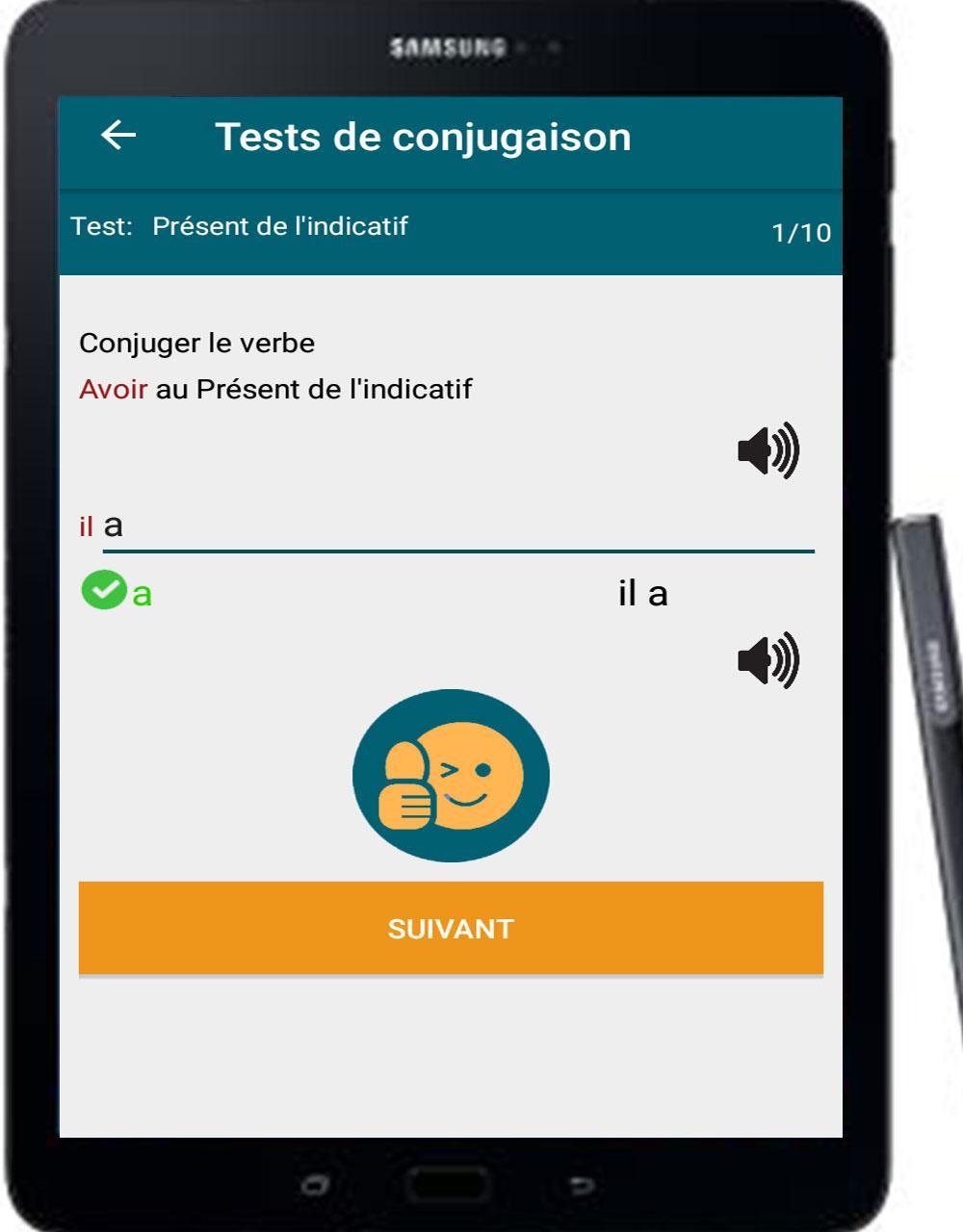 This game or application helps you to revise the conjugation at any time and improve your level of French conjugation, with exercises of dynamic conjugation