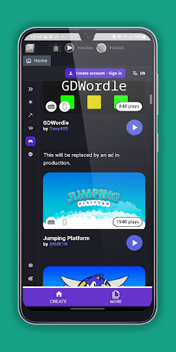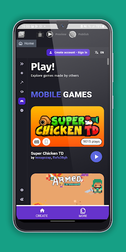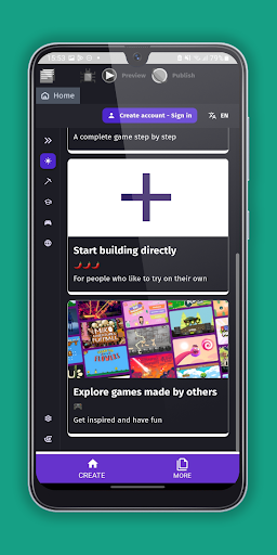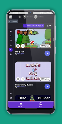 Game Builder doesn’t require any coding skills by using an intuitive and easy drag and drop interface for creators on mobile and desktop. Choose from over 900 free elements and build whatever you can imagine. Combine as many elements as you want to make your games special and achieve plays and likes from the community to see how you progress as a game designer!