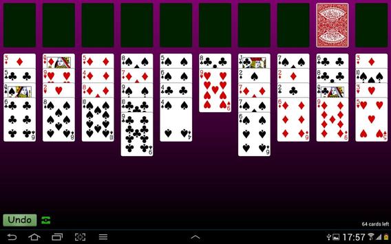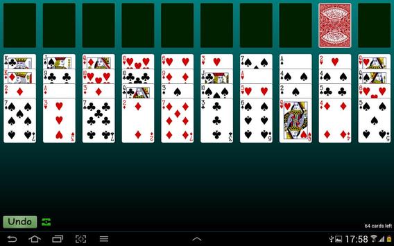 Forty thieves designed for best game experience, unlimited undo moves will help you thru the game, use the reset option to start the same game from beginning, use new game option to start new brand game, also don’t forget about our background option, our background option provides you to choose your screen color from unlimited colors variations, you can also choose to use our custom backgrounds, adjust your screen colors to your choose.