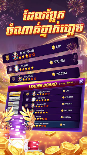 Tienlen အခမဲ့အွန်လိုင်းအခမဲ့အွန်လိုင်း, ခမာကဒ်ဂိမ်းလောင်းကစားရုံအွန်လိုင်းသည်သင်နေ့စဉ်ပျော်စရာများစွာဖြင့်အွန်လိုင်းတွင်ကူညီသည်။ ဂိမ်းကစားကြရအောင်။ကမ္ဘောဒီးယားတွင်ယနေ့အကြီးဆုံးဂိမ်းလောင်းကစားရုံအသိုင်းအဝိုင်းနှင့် ပူးပေါင်း. Club အသင်း 0 င်များနှင့်သင်၏ကြီးမားသောအောင်မြင်မှုအချိန်ကိုဝေမျှပါ။ ။
