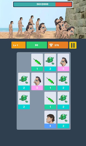 collect all 10 type of titans from small to colossal titan size by combining same type of titan.