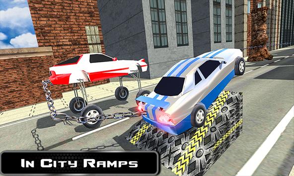 Mini SUV prado driver & ATV quad bike crazy rider! You have already completed the hardest driving missions through heavy traffic and have delivered the cargo as a trained transporter & elevated bus manager. Now you have to be the futuristic driver who is fully equipped with latest technology which give your chained truck & jumper cars elevation over the obstacles avoiding crashes & break chain which stops you from winning ultimate drift championship. Also your furious vehicles are linked with another opponent through thick metal chain which is another challenge you have to overcome on track route. With extreme city car driving, high speed engines with nitro boosts & tires with best city roads grip, just make sure to be number one racer in every single test ahead of you in Elevated Chained Car Race.