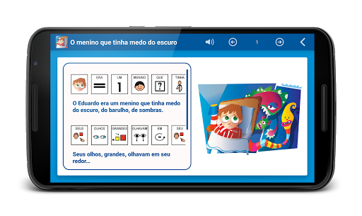 * Texto, Sistema SPC (Símbolos Pictográficos para Comunicação) e conversão dos símbolos pictográficos para voz.
