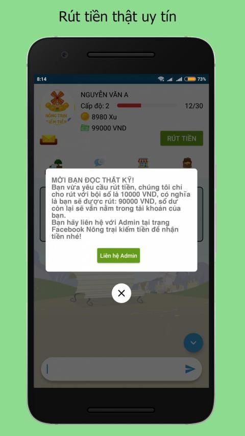 9Apps is your first choice to download apps. 20,000+ users downloaded Nông Trại Kiếm Tiền -Chơi và kiếm tiền thật uy tín latest version on 9Apps for free every week! The app can be the quickest one to play if you get used to it. This hot app was released on 2019-01-03. You can enjoy the most completed function of this app.