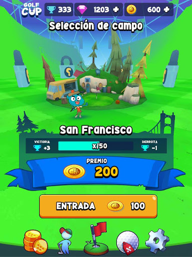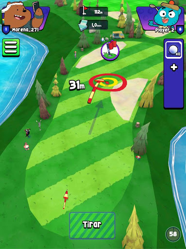 Measure your strength! Take advantage of the characteristics of the terrain to advance as quickly as possible to the green, avoid sand bunkers to avoid being trapped. Be careful not to fall into the water!