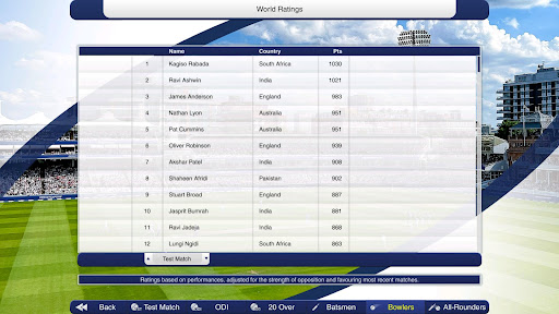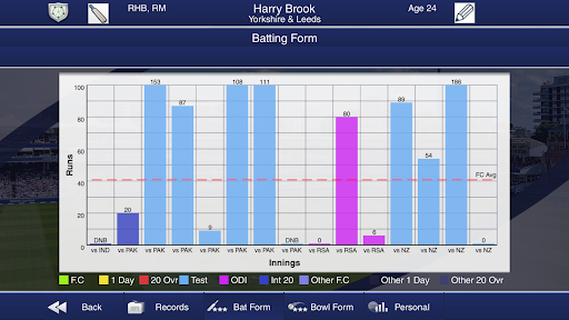 Cricket Captain 2023 also includes historical data for international player rankings and player recent form, including recent performances in Test, ODI and 20 Over Internationals. International team ranking has been remodelled using results of every match in the four-year window. New wicket keeper statistics are also included, with separate fielding stats for keepers and outfielders, as well as byes conceded records. Wicket keeper abilities are also now more accurate.