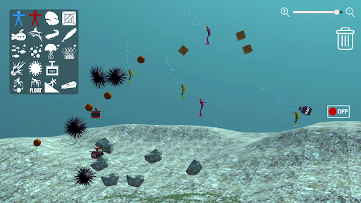 Experience our new people ragdoll playground underwater. Enjoy aquatic fun with underwater animals like Sharks, Electric fish, Whale, urchins, jelly fish, water bombs. Create underwater physics playground, bounce bubbles, activate float machine. Drive submarine, slide off ramps and slopes. And remember to beautify your playground with water glow particles, weeds, grass, or fishes the fun is yours. Enjoy!