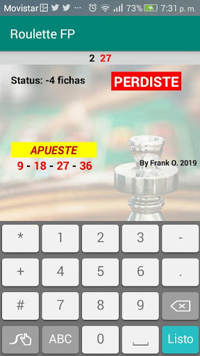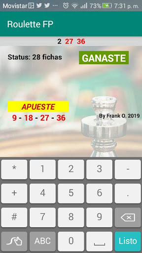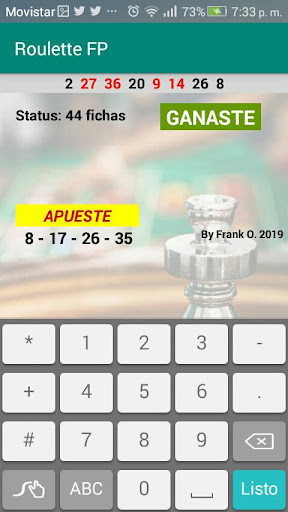 This application uses you suggests bets according to the last result of Roulette, is designed for European Roulette (Single Zero), indicates only 4 chips to bet per round, and has exit control in both Win and Loss, so that On some bad day you can retire on time and recover in a few hours or the next day.