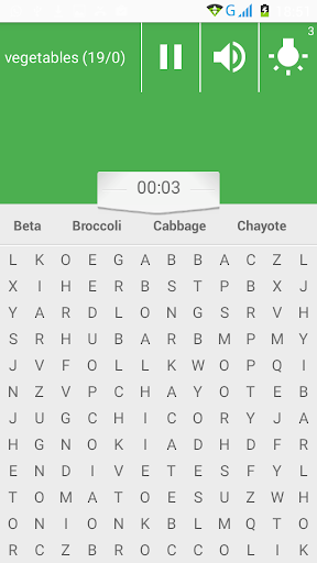 word search game based on vegetables