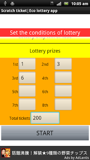 Settings, so come out and pick the type, you can press the "START" button to enter the numeric conditions there, the first piece of scratch ticket is displayed.
