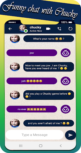 is a simulation game in witch you receive fake incoming calls and fake incoming video calls from chucky , it also simulate having chat with him.